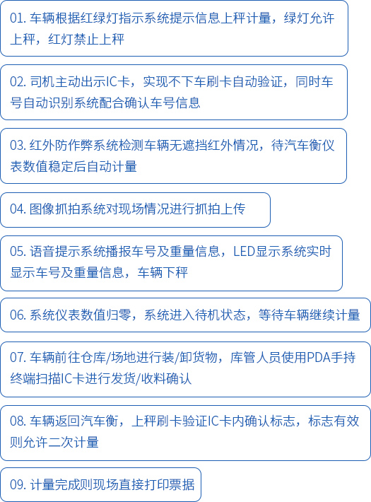 ● 采用先進的紅外光感技術,檢測車輛前輪后輪有無超出衡器范圍、后車是否緊跟壓秤等情況,規(guī)范計量流程。