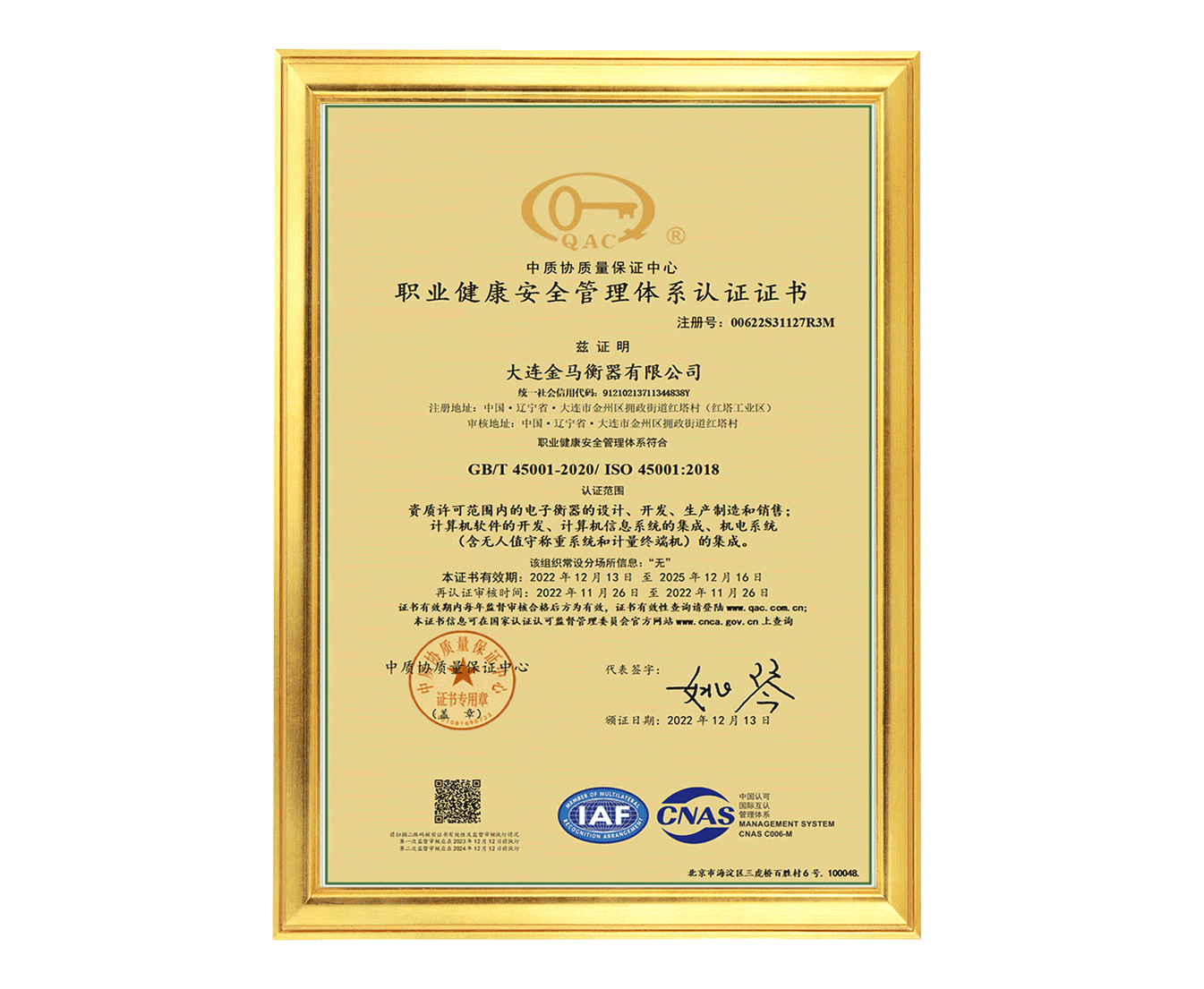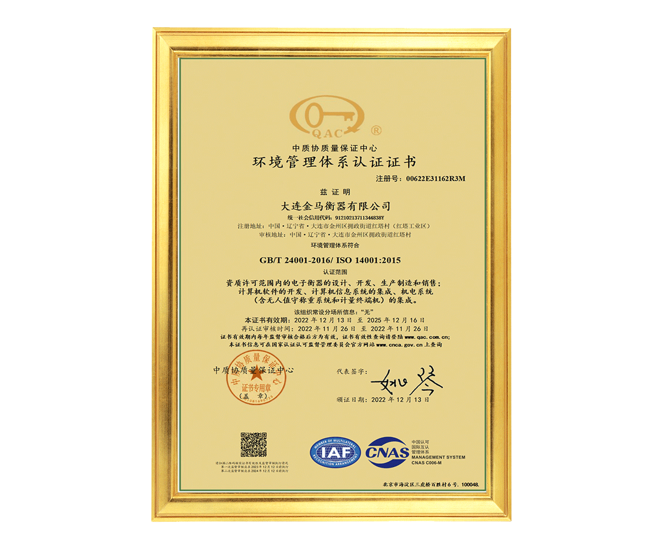 大連金馬衡器校準(zhǔn)實驗室(CNAS)