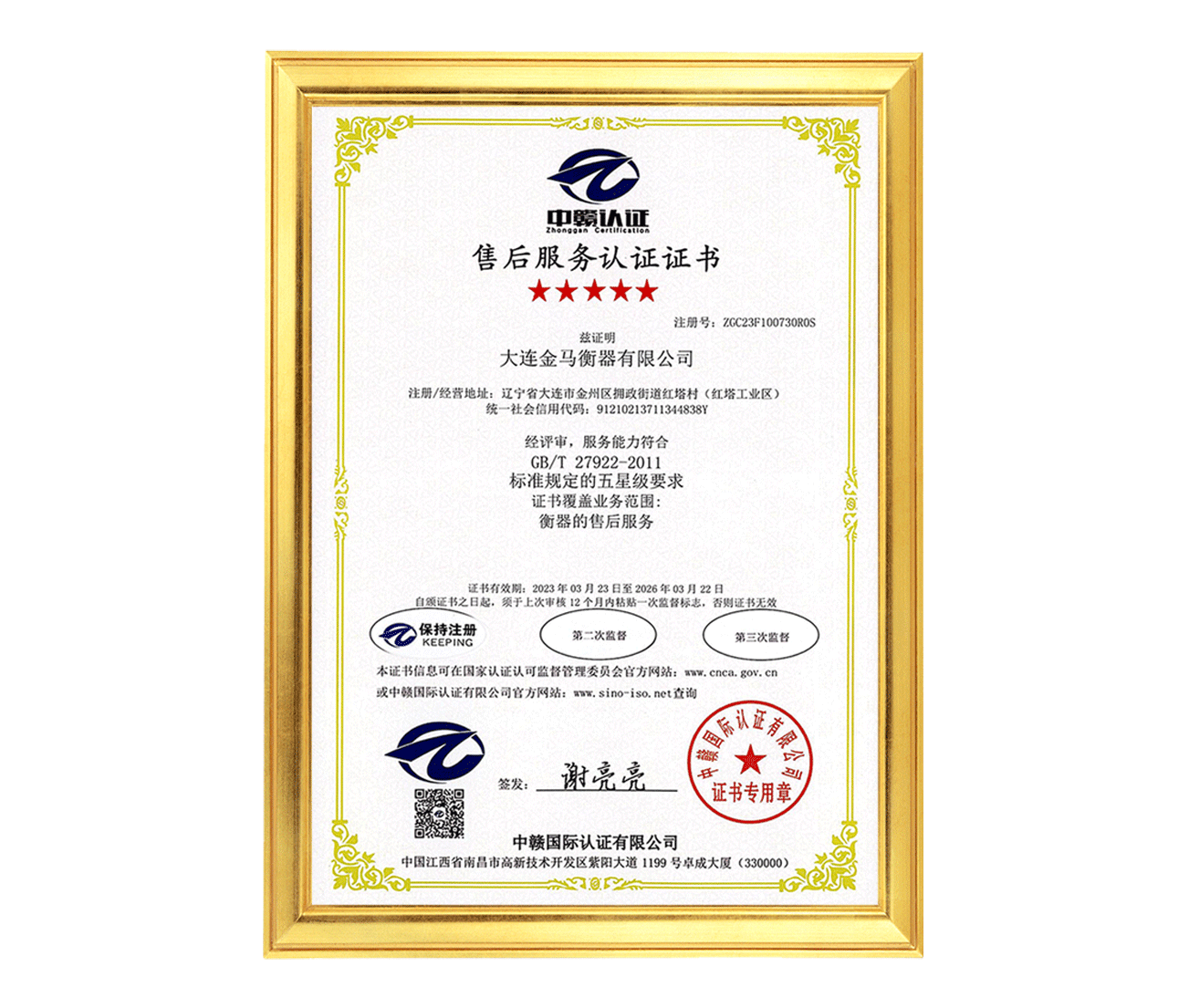 五星售后服務(wù)認證